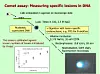 Comet assay, som beskrevet over, brukes for å påvise DNA-brudd. Den alkaliske versjonen påviser i tillegg alkalielabile seter, særlig DNA-seter hvor basen har gått tapt. Det kan enten ha skjedd spontant, som et resultat av DNA-skade eller i et mellomliggende stadium av base-eksisjons-reparasjon (BER). I tillegg kan modifiserte baser påvises ved innføring av et ekstra trinn; etter lysering blir nukleoidene kuttet med et enzym som danner DNA-brudd ved en spesifikk DNA-lesjon (se figur 3). De bakterielle DNA-reparasjonsenzymene formamidopyrimidine DNA glycosylase (FPG) og endonuklease III (endoIII) kjenner igjen henholdsvis 8-oksoguanin og andre oksiderte pyrimidiner. T4-denV-enzymet danner brudd ved seter der det har blitt dannet UV-induserte pyrimidindimerer. For å estimere frekvensen av oksiderte guaniner, inkuberer vi parallelle plater med buffer eller FPG, det måles prosent hale-score for hver av dem, og score for bufferprøvene trekkes fra score for FPG-prøvene. På den måten får vi ”netto FPG-sensitive seter”.