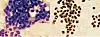 Lufttørket materiale for immuncytokjemi ble oppbevart ved -20 ºC innen en til fire timer etter at aspirasjonen var utført. Utstryk med flest celler ble valgt til primærdiagnostikk ved hjelp av visuell inspeksjon av de ufargede utstrykene. Mengde materiale, fravær av fettvev (som lett kan identifiseres) og prøvetakerens erfaring bidro i denne vurderingen. Om nødvendig ble flere glass brukt til primærdiagnostikken. De øvrige utstryk ble brukt til immuncytokjemi dersom det var nok materiale.