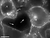 I tillegg er TNT-strukturen meget skjør og sensitiv for ytre påvirkninger, som bevegelser i cellemediet og lyseksponering fra mikroskopet (1). Fiksering av cellene vil også kunne redusere antall TNT-strukturer, både på grunn av vasking og på grunn av fikseringsvæsken i seg selv. Det er for eksempel rapportert om flere ulike kjemikalier som kan påvirke overføringen av vesikler mellom NRK-celler via TNT-strukturer (13). Mikroskop som ofte brukes til TNT-forskning er fluorescensmikroskop, konfokalmikroskop og skanning elektronmikroskop (SEM). Et eksempel på to TNT-er mellom to HEK293-celler. Se figur 3.
